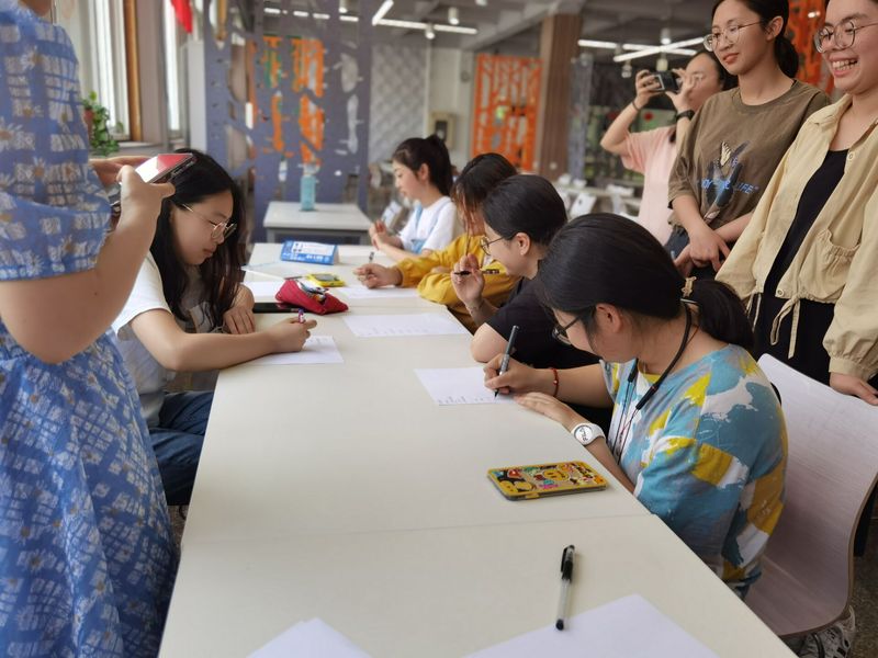 同学们三三两两地靠在一起,或分享经验,或商讨技巧;还来了一些可爱的小朋友们。品茶环节,有的同学的脸上还粘有米粒,有的同学“偷吃”包剩的蜜枣,有的被揪起小耳朵……快活的空气充满着方塔食堂二楼的一方天地。