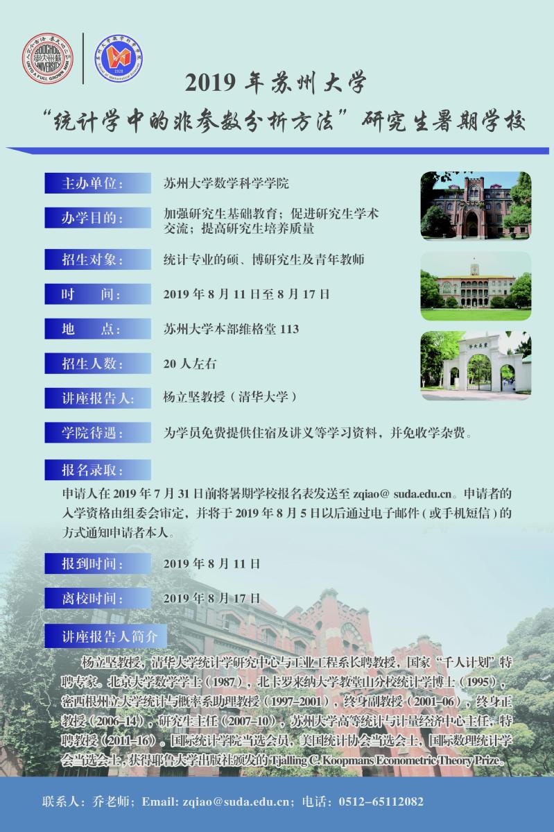 2019年黄色仓库 “统计学中的非参数分析方法”研究生暑期黄色仓库
